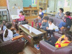 縦割り班ごとに分かれて、高学年から読み聞かせをしてもらう恒例の「読み聞かせ会」です。回を重ねるごとに、読み手が上手になっていくのがわかります。また、下学年のお話を聴く集中力も日に日に高まっている様子です。読書を通してつながりを深めるとても心地よいひと時が流れていました。