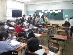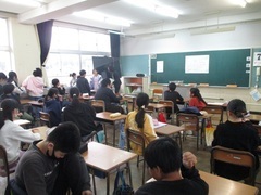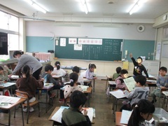 新しい下駄箱、新しい傘立て、新しい教室。いたるところに新しい出会いがいっぱいの初日。どの教室も、担任の先生とのいい出会いができた様子です。