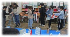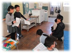 6年生がファミリー班で本の読み聞かせを行いました。聞きやすいように、本の...